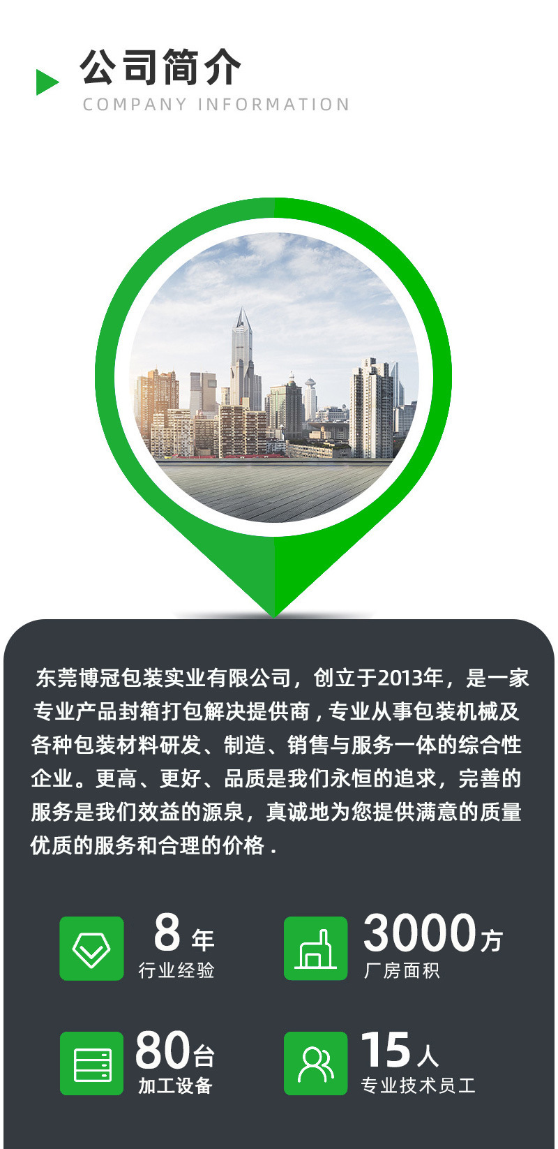 以全新的現(xiàn)代化管理模式及發(fā)展戰(zhàn)略打造具有影響力的新世紀(jì)現(xiàn)代化包裝設(shè)備制造商,為廣大客戶提供包裝技術(shù)解決方案