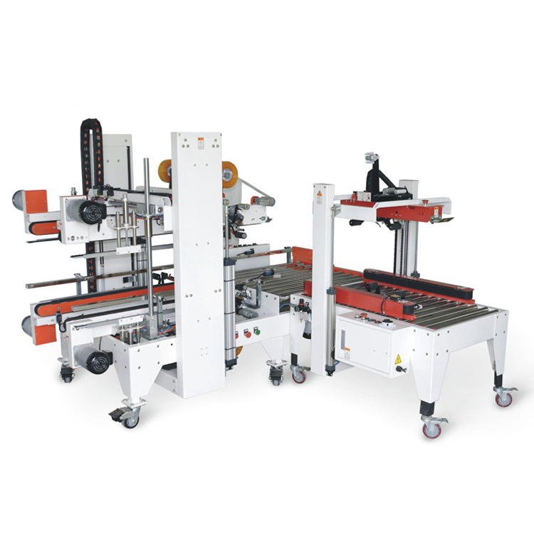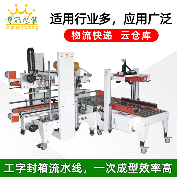 工字封箱機主要是通過機械傳動和膠帶粘貼的方式來完成封箱操作。當(dāng)紙箱被輸送到封箱機的工作區(qū)域時,機器首先會將紙箱的箱蓋折疊起來,使其形成一個類似于 “工” 字的形狀。然后,膠帶供給系統(tǒng)會啟動,將膠帶從膠帶卷中引出。膠帶經(jīng)過一組滾輪或機械臂,被準確地貼合在紙箱的頂部和底部封口處,通過滾輪的壓力使膠帶牢固地粘貼在紙箱上,從而完成封箱過程。