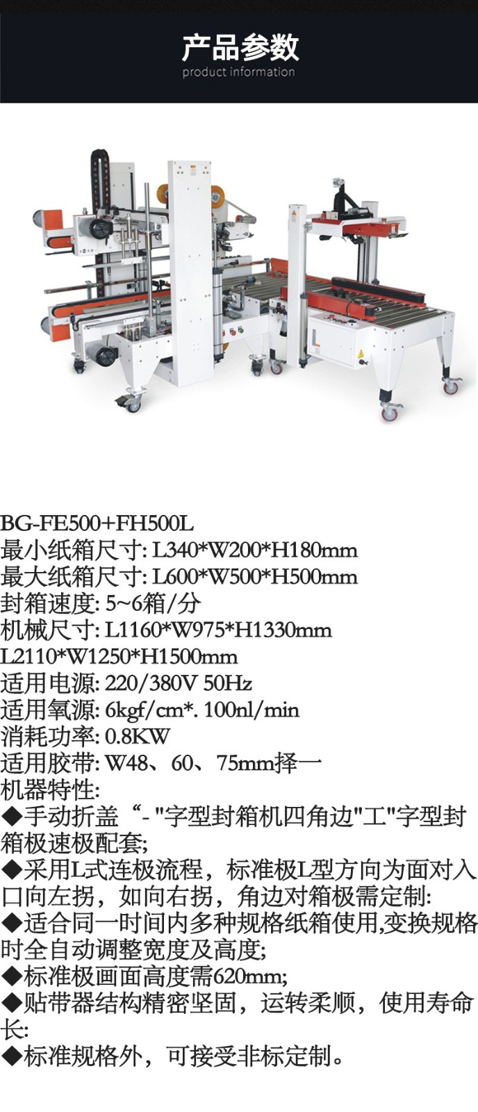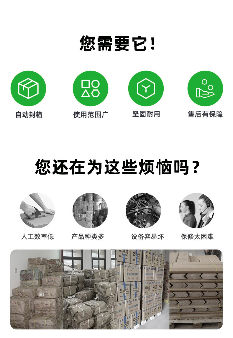 箱蓋折疊機構(gòu):這是工字封箱機的關(guān)鍵部分之一。它包括多個機械臂或擋板,當(dāng)紙箱到達折疊位置時,這些部件會按照一定的順序和角度運動,將紙箱的箱蓋逐步折疊起來。例如,先將兩側(cè)的箱蓋向中間折疊,然后再將頂部的箱蓋向下折疊,形成 “工” 字形狀。