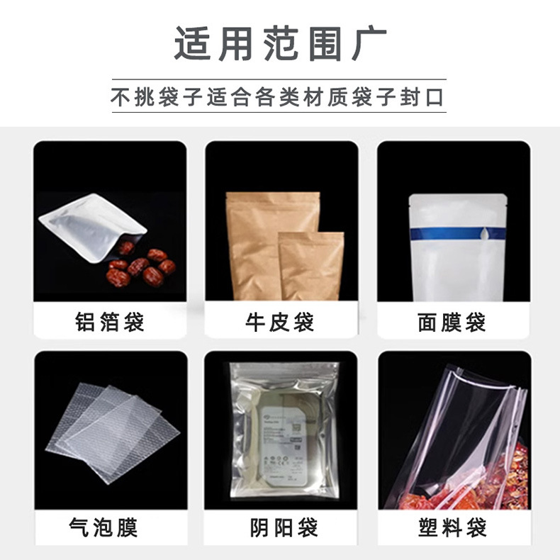 - 封口溫度范圍:通常跨度 0 - 400℃,不同材質(zhì)包裝袋對(duì)應(yīng)專屬溫度 “密碼”,像 PE 材質(zhì) 120 - 180℃,PET 材質(zhì) 260 - 280℃ ,精準(zhǔn)控溫是優(yōu)質(zhì)封口的基石。