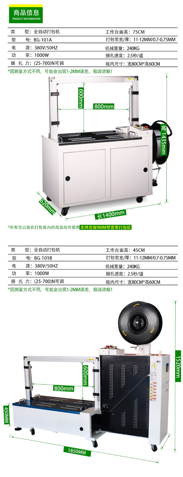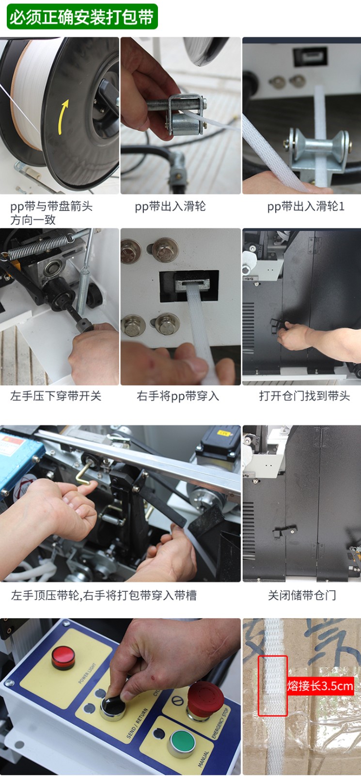 - 適應(yīng)性:好的打包機能夠適應(yīng)不同材質(zhì)、寬度和厚度的打包帶,以及不同尺寸和形狀的物品。在使用不同規(guī)格的打包帶和對不同物品進行打包時,設(shè)備應(yīng)能自動調(diào)整參數(shù),保證打包質(zhì)量。
