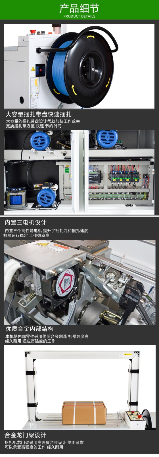 - 電機:電機是打包機的動力源,好的電機運行穩(wěn)定、噪音小、動力強勁、散熱性能好。可以查看電機的品牌、功率和轉(zhuǎn)速等參數(shù),知名品牌的電機通常質(zhì)量更有保障。用手轉(zhuǎn)動電機軸,應(yīng)感覺順暢,無卡滯或異常阻力。