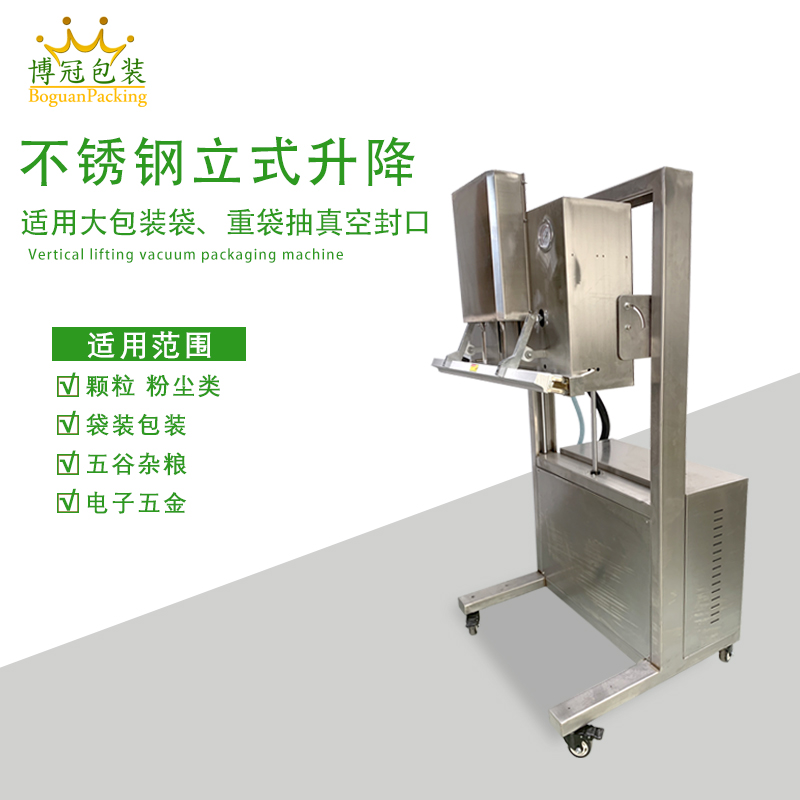 - 立式升降真空包裝機:真空室容積更大,承重能力更強(部分機型可承重 50kg 以上),能處理大袋顆粒(如飼料、塑膠粒)、大件五金件等普通機型無法容納的物品。