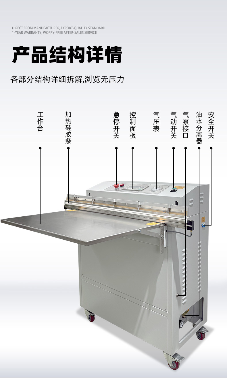 • 功能匹配:根據核心需求選擇集成功能,例如食品行業優先選 “真空 + 充氣 + 印字” 款,工業領域可側重 “真空 + 寬邊封口” 款。
