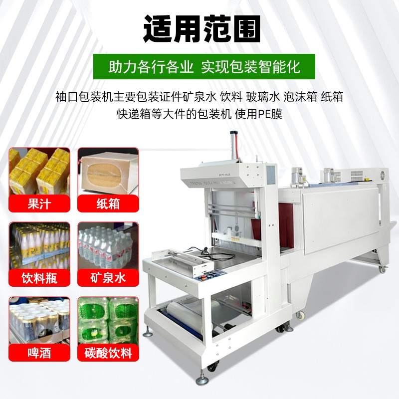 在食品飲料、日化用品等行業的批量生產環節中,包裝工序的效率與品質直接影響企業產能與產品市場競爭力。袖口式熱收縮包裝機作為專為單瓶 / 多瓶組合包裝設計的專業設備,憑借 “強適配、穩性能、優效果” 的核心特質,成為解決行業包裝痛點的關鍵裝備,其功能細節與應用價值值得深入探究。