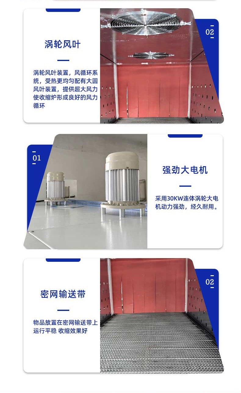 不同于傳統通用型包裝設備,袖口式熱收縮包裝機從設計源頭就瞄準 “瓶類產品組合包裝” 場景,徹底擺脫 “一機一用” 的局限。其針對瓶型包裝的特殊性,采用 “輸送帶 + 膜架 + 熱收縮通道” 的一體化結構:輸送帶可根據瓶身直徑、高度靈活調節寬度與輸送速度,無論是 500ml 的標準礦泉水瓶、1.2L 的果汁瓶,還是按壓式泵頭設計的洗手液瓶、帶提手的消毒液瓶,均能通過輸送帶平穩輸送且不偏移;膜架部分配備自動張力控制系統,可根據包裝膜厚度(常用 POF、PE 膜)精準調節出膜力度,避免因膜張力不均導致的包裝褶皺或破損;熱收縮通道則采用分區加熱設計,針對瓶身與組合間隙的不同熱收縮需求,實現均勻受熱,確保單瓶獨立包裝時膜面貼合瓶身,多瓶組合(如 2 瓶并排、4 瓶成箱、6 瓶堆疊)時膜體緊密包裹整體,杜絕 “局部收縮不到位” 的問題。