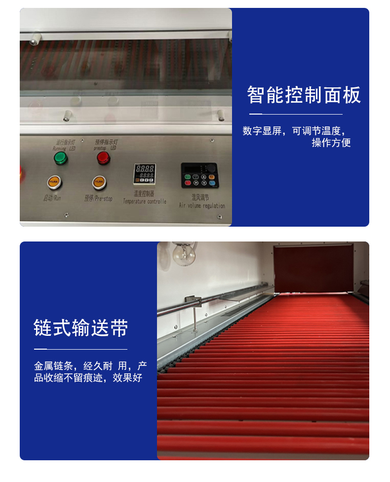 • 開機前執行預熱檢查:封切刀和收縮爐需按說明書預熱至設定溫度(通常封切刀 180-220℃,收縮爐 120-160℃),未達標前不啟動運行,防止低溫封切不牢。