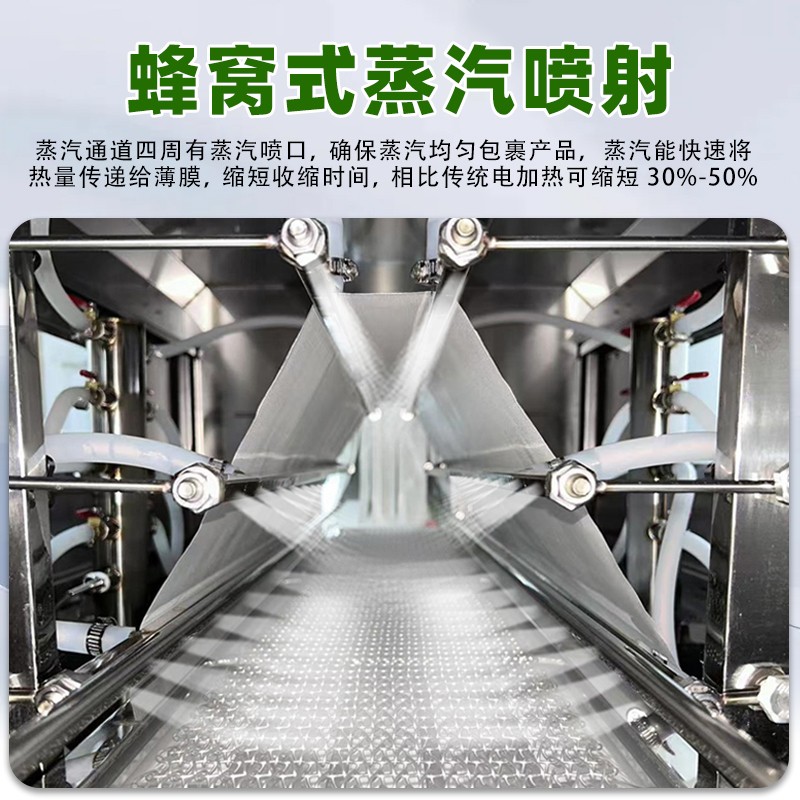 - 收縮效果好:蒸汽能夠全方位地接觸薄膜,使薄膜各個部位受熱均勻,收縮效果一致,可有效避免收縮不均勻、出現褶皺等問題,能讓包裝膜緊密、平整地貼合在產品表面,提升產品的外觀品質14。