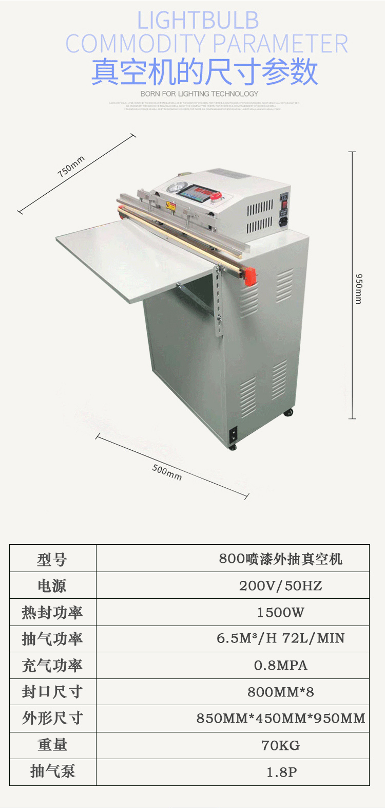 外抽式真空包裝機BG-800