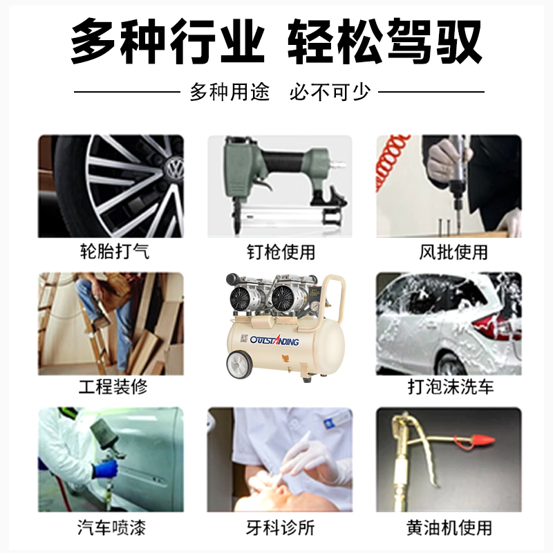 無油空壓機二極四極氣泵噴漆空氣壓縮機打氣泵木工裝修