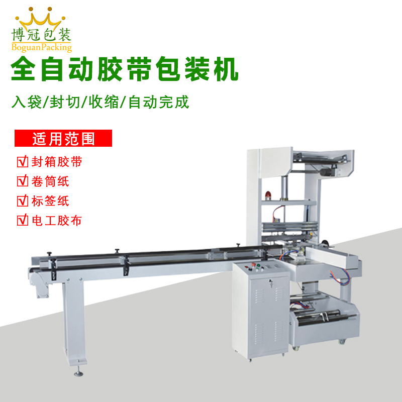 - 袖口式包裝優勢:采用袖口式包裝方式,使包裝后的膠帶產品具有獨特的外觀。這種包裝形式在袋口處形成類似袖口的形狀,不僅美觀大方,而且便于消費者開啟和使用。例如,消費者在取用膠帶時,可以輕松地抓住袖口部分撕開包裝,提高了用戶體驗。