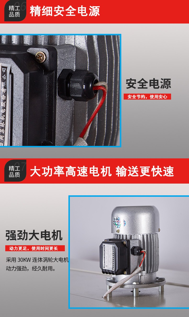 加熱系統是熱收縮機的核心部件。它主要由加熱元件(如石英加熱管或不銹鋼加熱管)和溫控裝置組成。石英加熱管升溫速度快,熱效率高;不銹鋼加熱管則具有使用壽命長等特點。溫控裝置可以根據不同的薄膜材料和包裝要求,精確地控制加熱溫度,一般溫度范圍可以從 100℃ - 300℃左右。