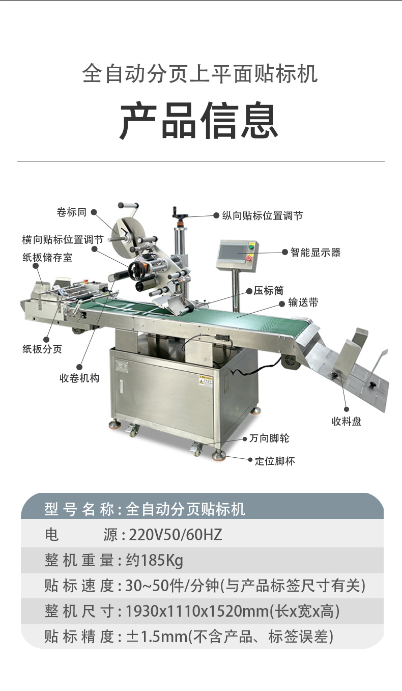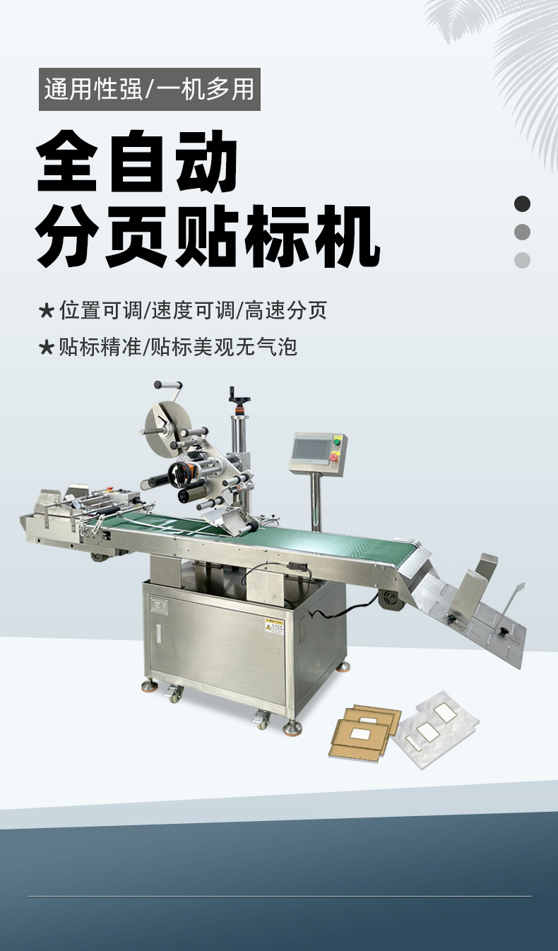 • 質量穩定:在大規模生產中,產品質量的穩定性至關重要。全自動分頁貼標機能夠以穩定的性能和高精度的貼標操作,確保每一個產品上的標簽都粘貼得準確、牢固、美觀,保證了產品包裝的一致性和規范性,有助于企業樹立良好的品牌形象,提高產品在市場上的競爭力,更好地滿足大規模生產對產品質量的嚴格要求