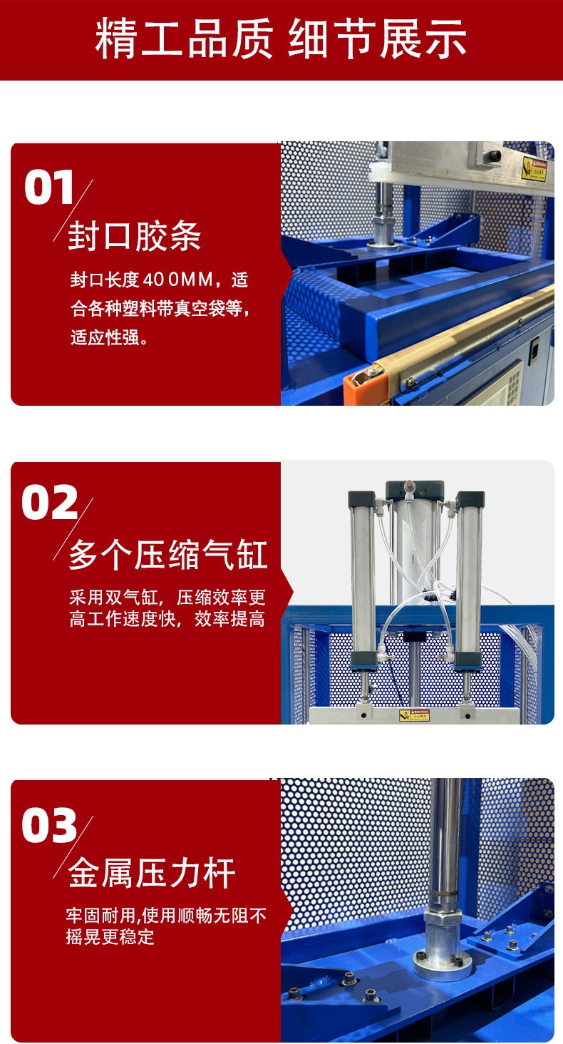 - 封口:在完成壓縮和抽真空后,利用加熱元件對包裝袋的封口部位進行加熱,使塑料薄膜受熱熔化,然后通過冷卻和滾壓裝置,將熔化的薄膜壓合在一起,形成牢固的密封口,防止空氣和水分進入包裝袋。