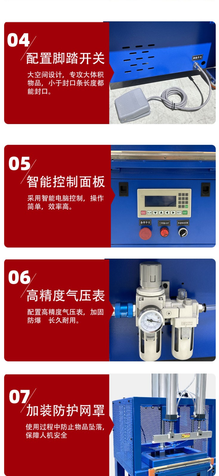 - 封口質量好:通過精確控制加熱溫度和封口時間,能夠實現牢固、平整的封口,密封性能良好,防止包裝袋漏氣。
