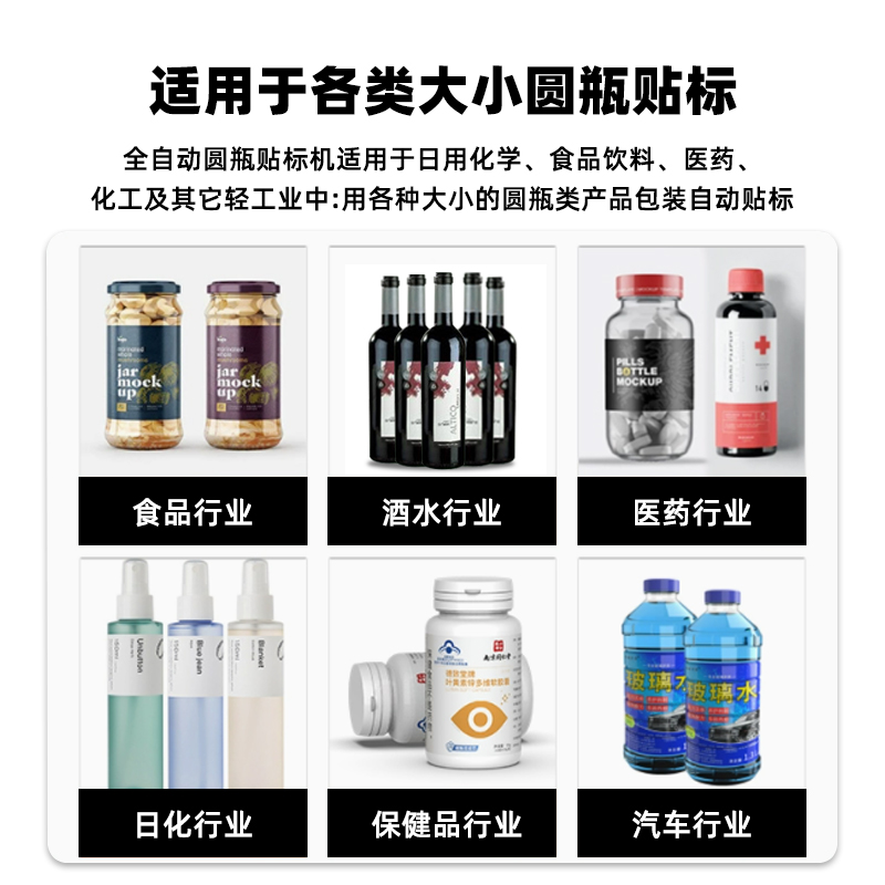 - 貼標:當圓瓶到達貼標位置時,貼標機構的標簽牽引裝置根據預設的標簽長度,將標簽從標簽卷上牽引出來,貼標頭在控制系統的指令下,將標簽準確地貼附在圓瓶表面。同時,壓標裝置對標簽進行壓實,使其牢固地粘貼在瓶身上。