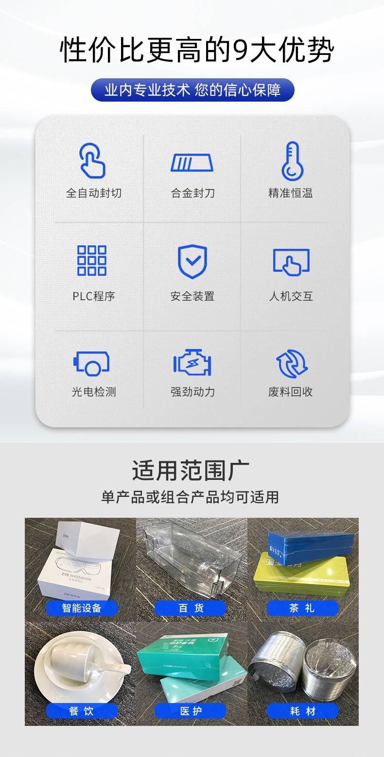 相比水平封切、半自動(dòng)收縮機(jī),全自動(dòng)垂直封切熱收縮包裝機(jī)的核心優(yōu)勢(shì)集中在 “適配性、效率、穩(wěn)定性” 三大維度: