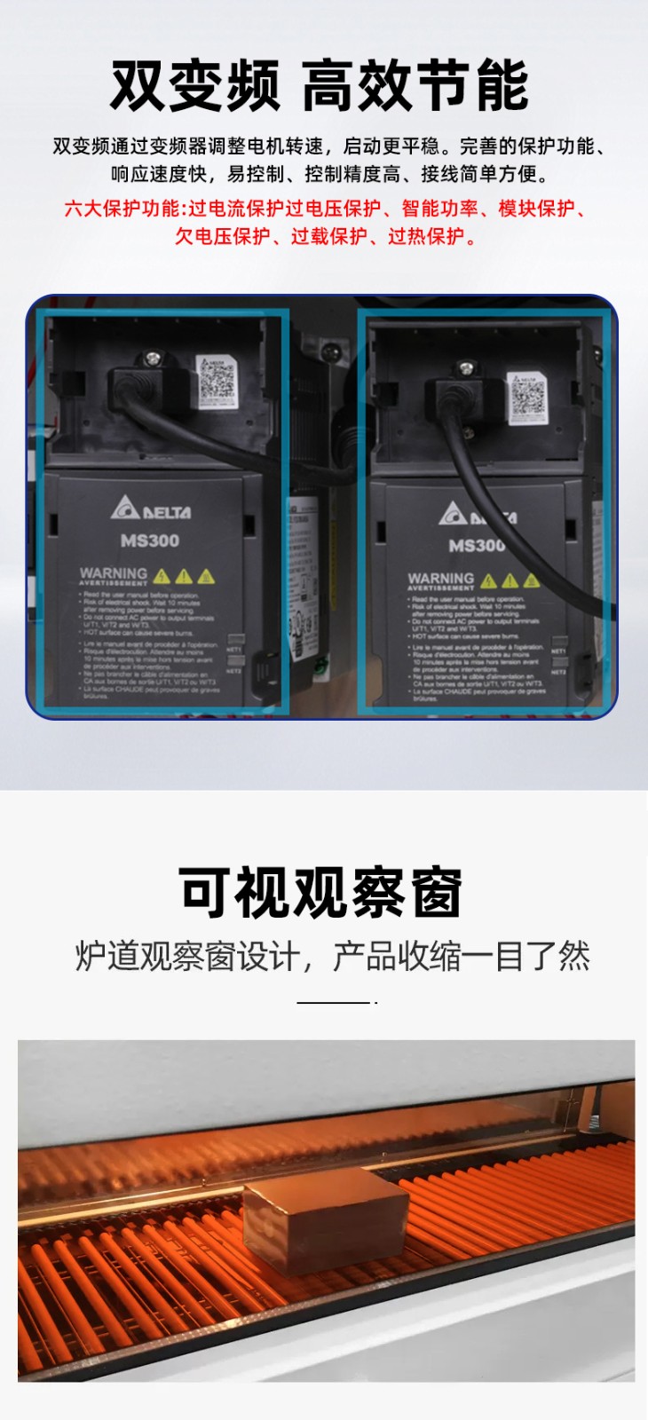 封切后的 “膜 + 產(chǎn)品” 進(jìn)入通道,內(nèi)部通過熱風(fēng)循環(huán)系統(tǒng)(多組發(fā)熱管 + 離心風(fēng)機(jī))產(chǎn)生均勻熱風(fēng),使膜材受熱收縮并緊密貼合產(chǎn)品表面;通道溫度、風(fēng)速、輸送速度可精準(zhǔn)調(diào)節(jié),適配不同材質(zhì)的膜(如 POF 膜需 120-180℃,PE 膜需 180-220℃)。 - 輸送系統(tǒng):