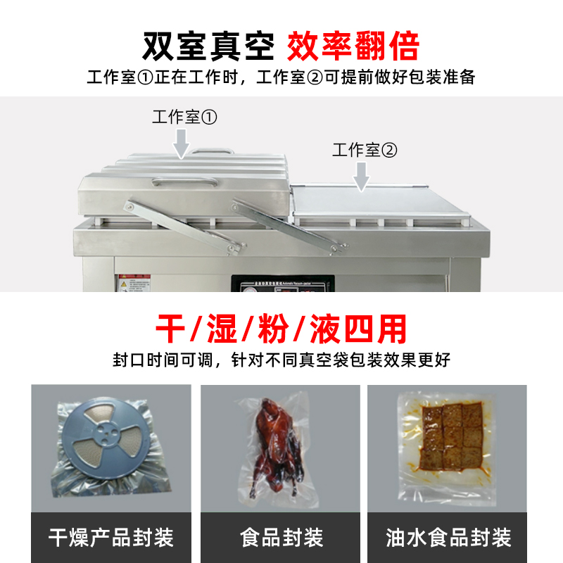 食品保鮮真空包裝機真空封口機 大型商用包裝袋雙室抽真空機