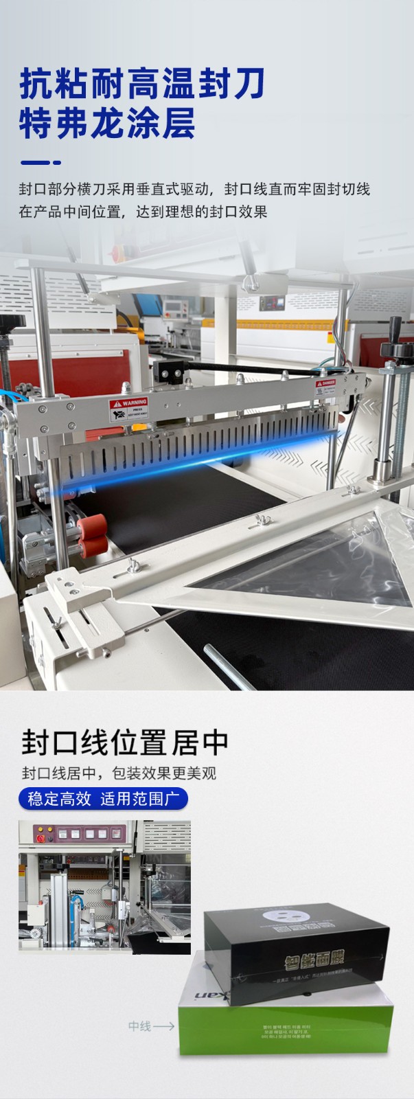 - 自動化程度高3:可自動完成送膜、制袋、封切、熱收縮等一系列包裝工序,能與生產(chǎn)線實現(xiàn)無人化操作連接,大大提高包裝效率,降低人工成本。